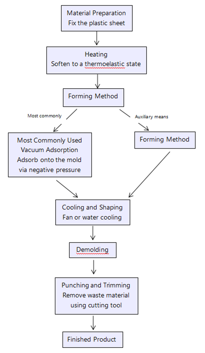 Kerna Principo: Varmigu kaj moligi la plastan folion, tiam uzu vakuon por adsorbi ĝin sur la muldila surfaco, kaj ĝi formos post malvarmigo.